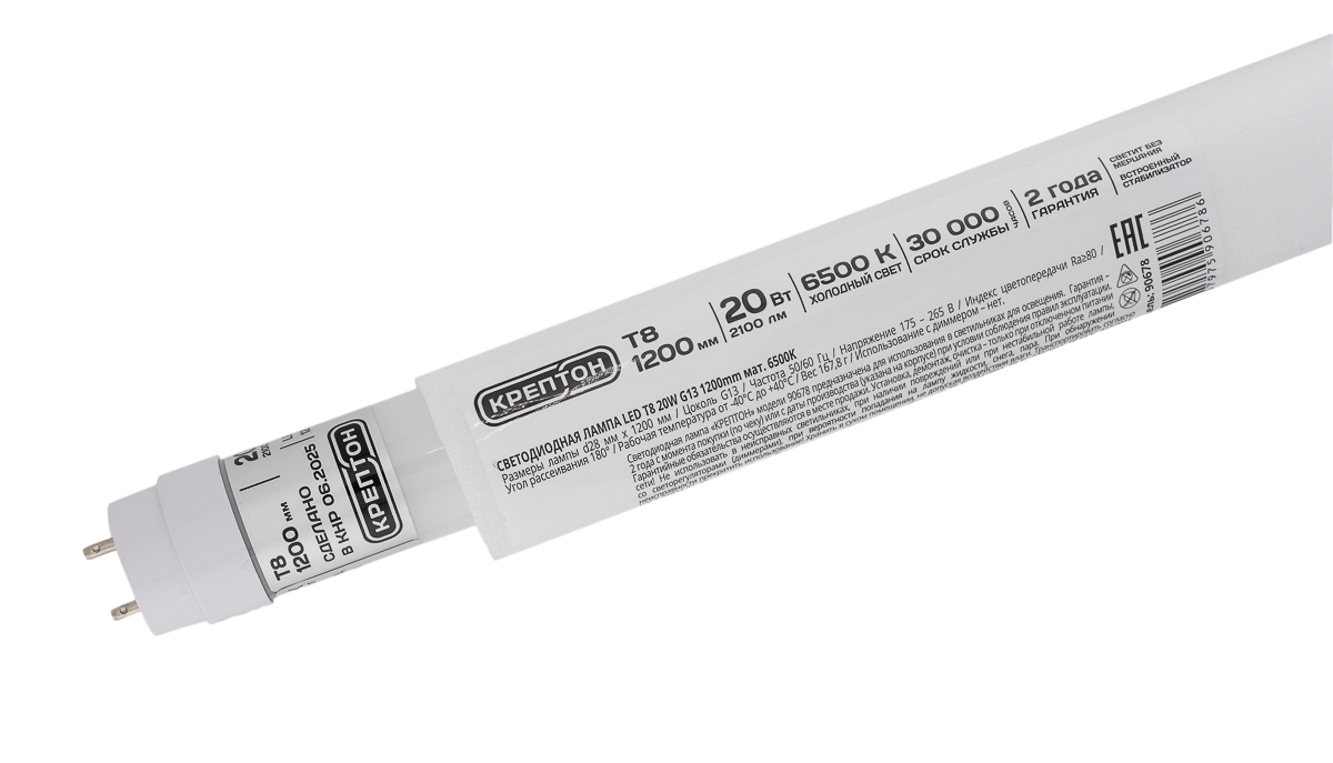 LED T8 20W G13 1200mm матовая 6500K арт. 90678
